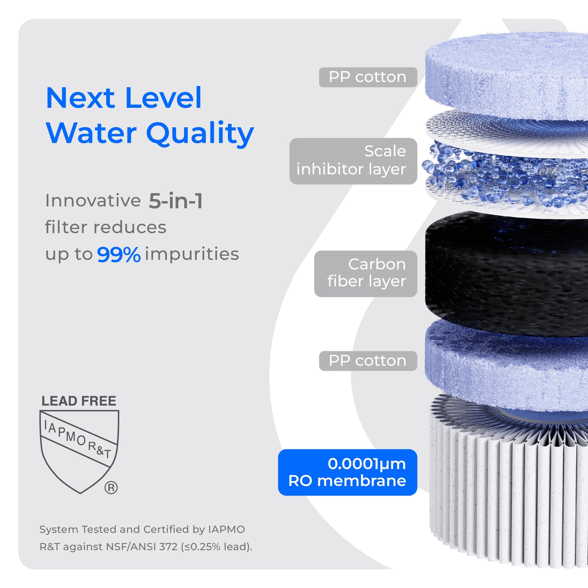 The water quality from this RO system is on par with, or even exceeds. By removing fine particulates and dissolved solids, the system delivers exceptional water purity directly from your tap. And its 3:1 water efficiency ratio achieves less waste while being sustainable.