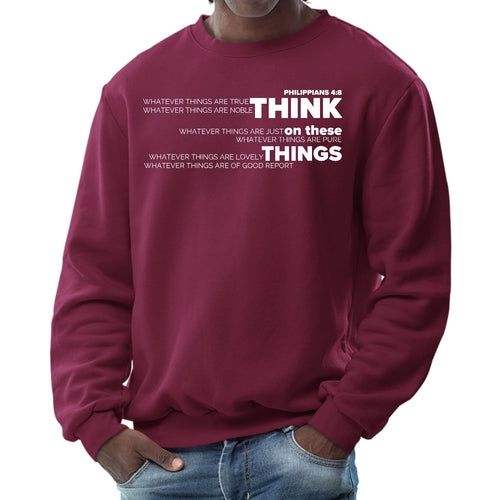 Think On These Things Scripture Quote Bible Verse Print. Mens Long Sleeve Crewneck Sweatshirt. This crewneck sweatshirt is durable, made to last, and is comfortable enough to wear all day.