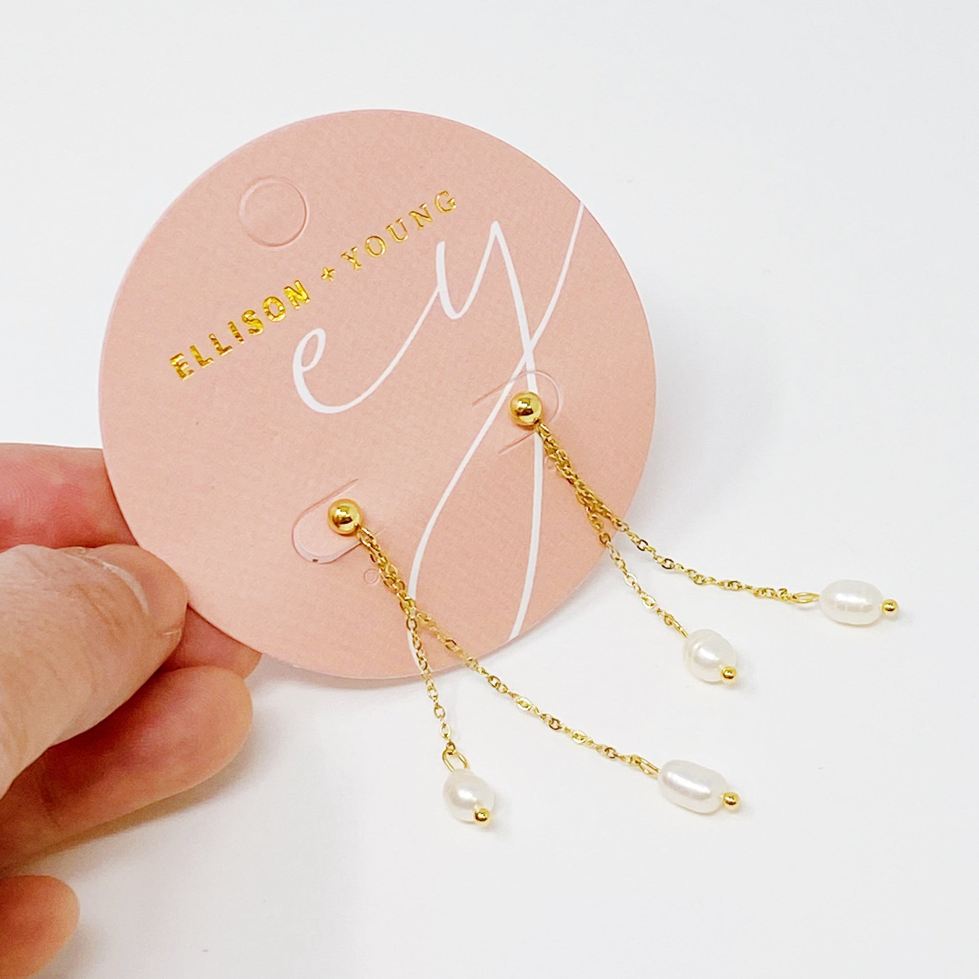 Long chain strands with 2 freshwater pearls. Beautifully dangles and great for everyday and any occasions!