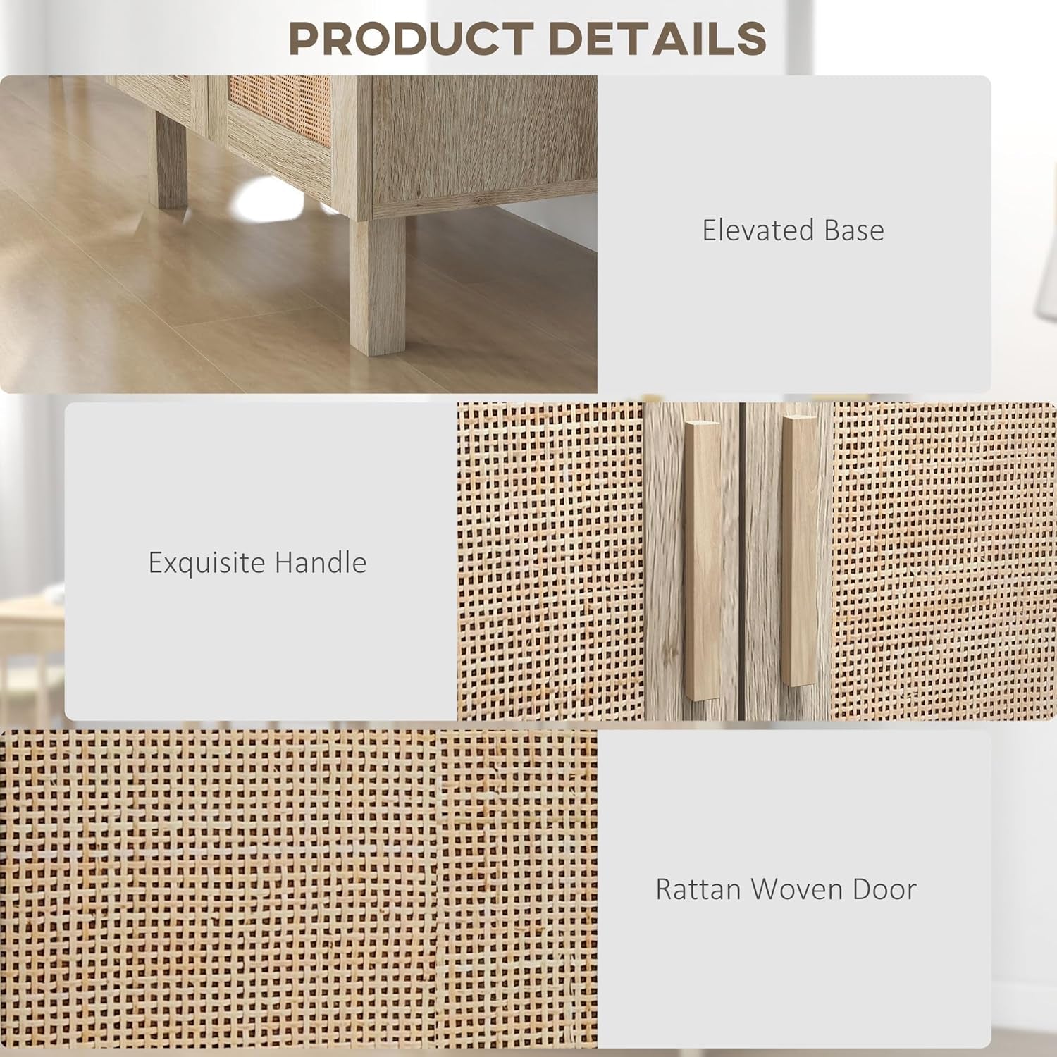 - Boho Design: The storage cabinet with doors and shelves features a unique woven rattan wicker doors design, it will provide a modern and natural look that perfectly matches a large range of home decor styles.